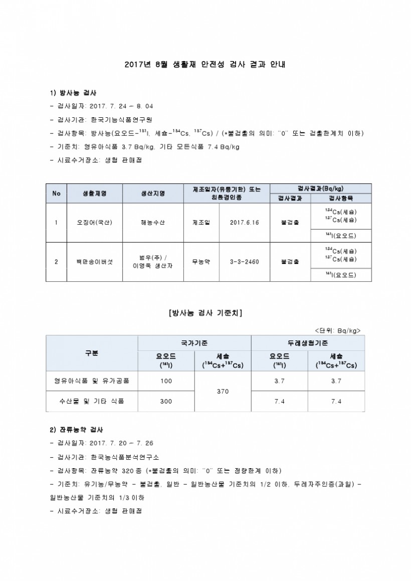 2017년 8월 생활재 안전검사 결과 > 생활재 검사결과