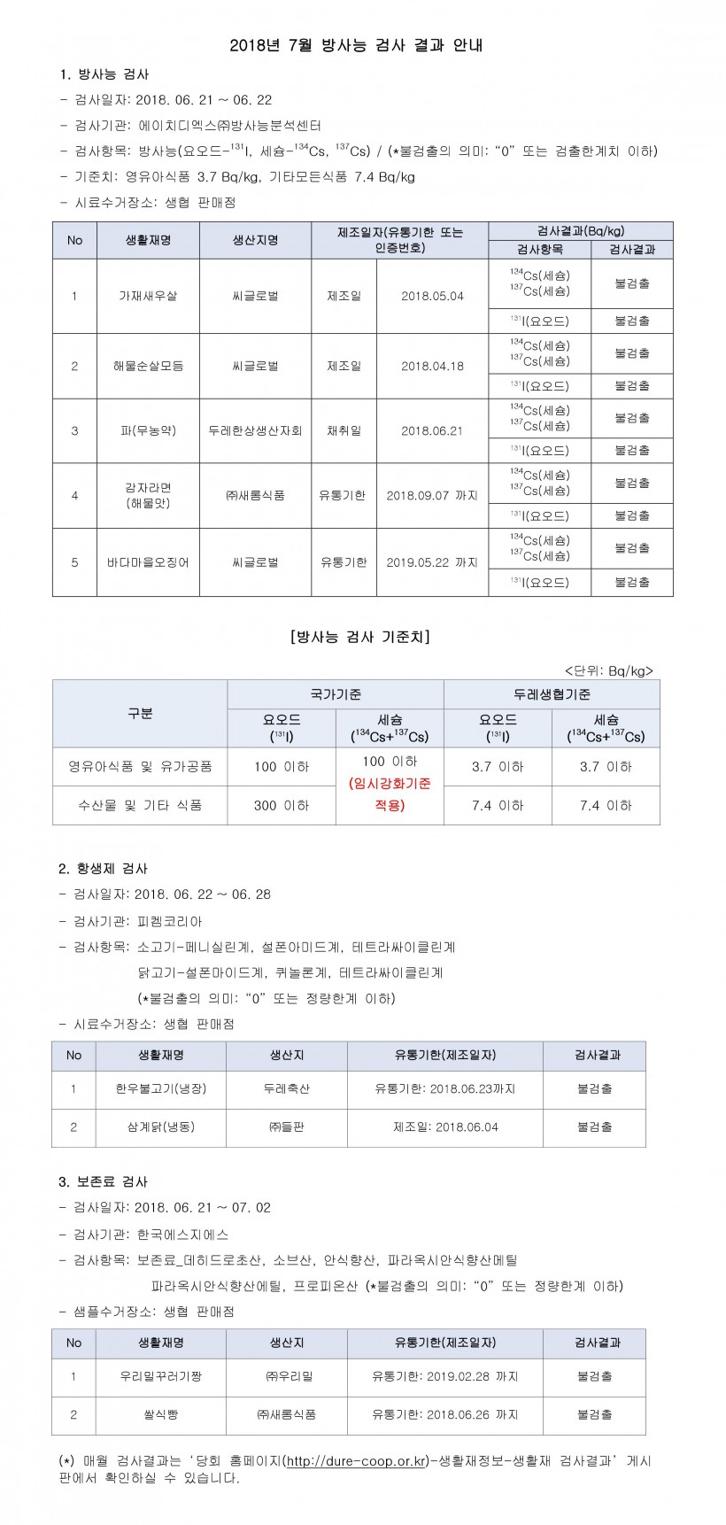 2018년 6월 생활재 안전검사 결과