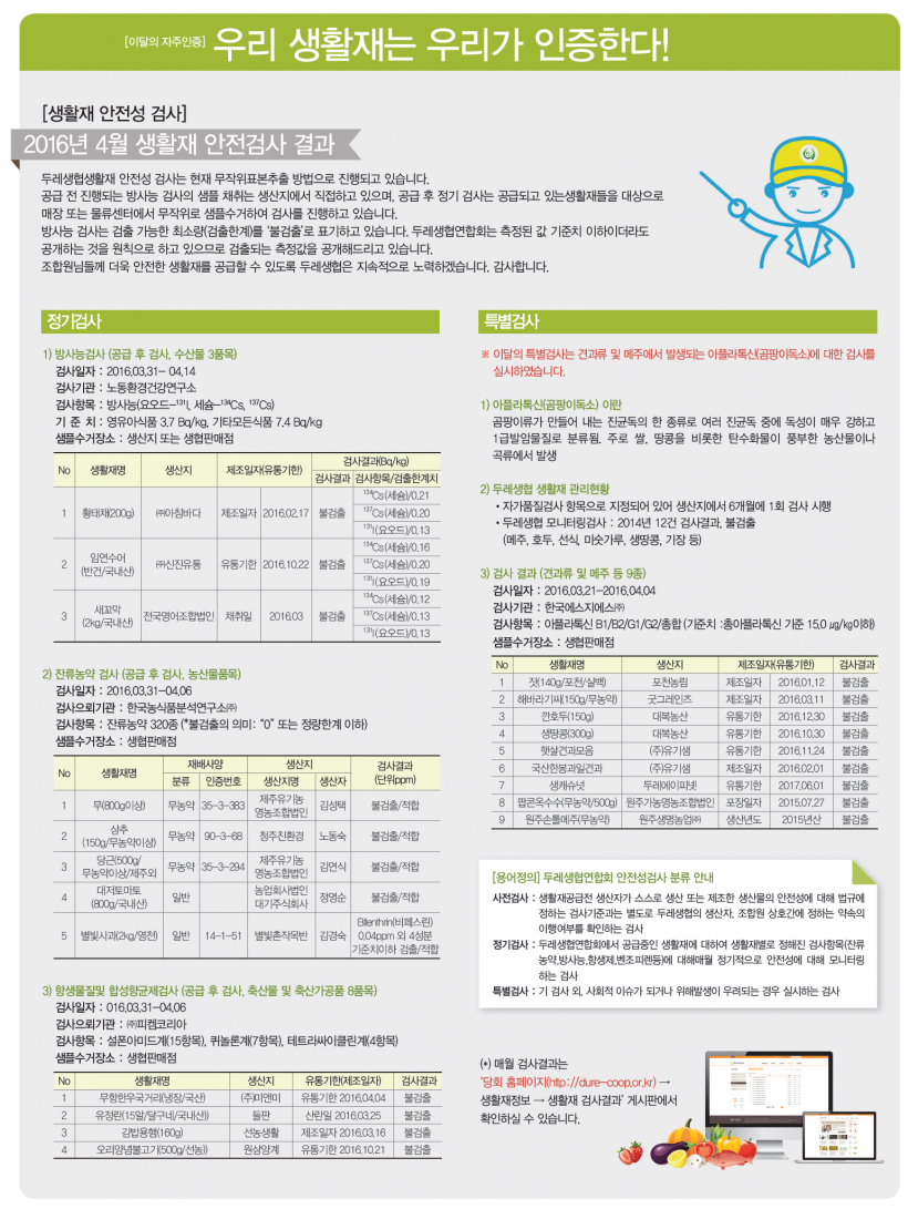 2016년 4월 생활재 안전검사 결과