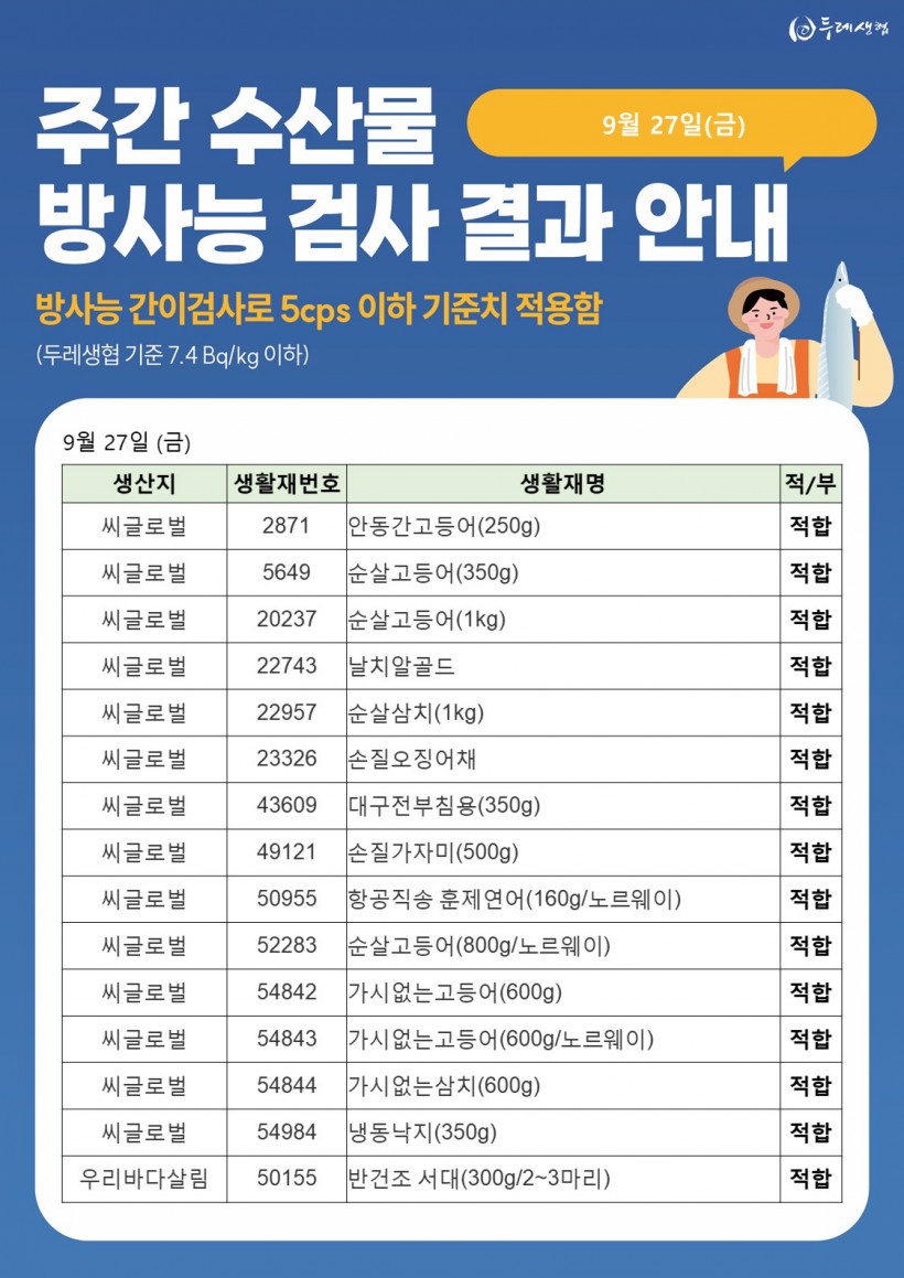 2024년 39주 수산물 주간 방사능검사 > 생활재 검사결과