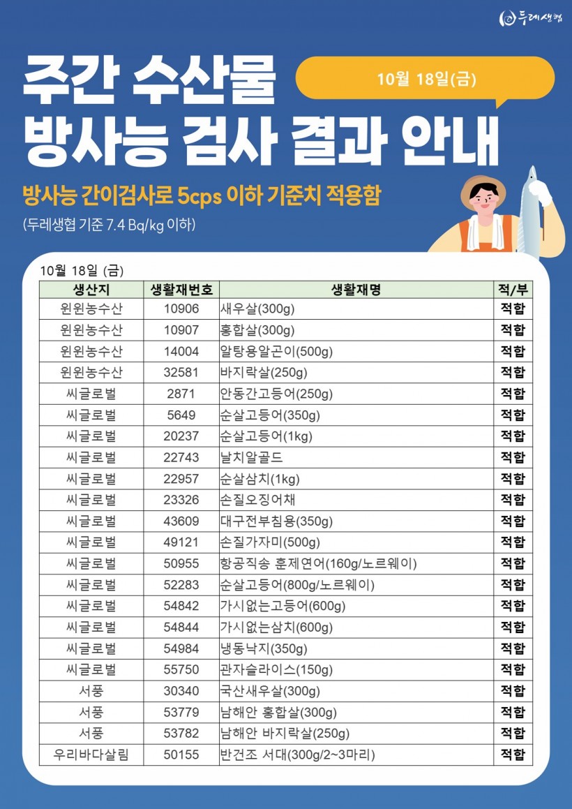 2024년 42주 수산물 주간 방사능검사 > 생활재 검사결과