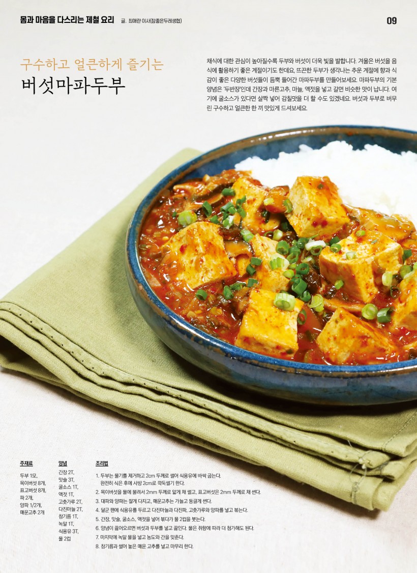 [제철요리] 구수하고 얼큰하게 즐기는 버섯마파두부 > 두레 COOK