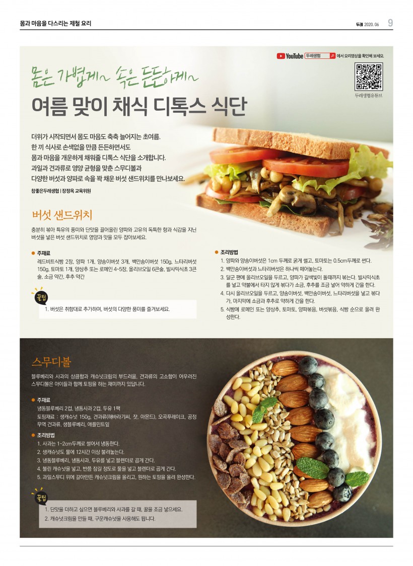 [제철요리] 몸은 가볍게~ 속은 든든하게~ 여름 맞치 채식 디톡스 식단 > 두레 COOK