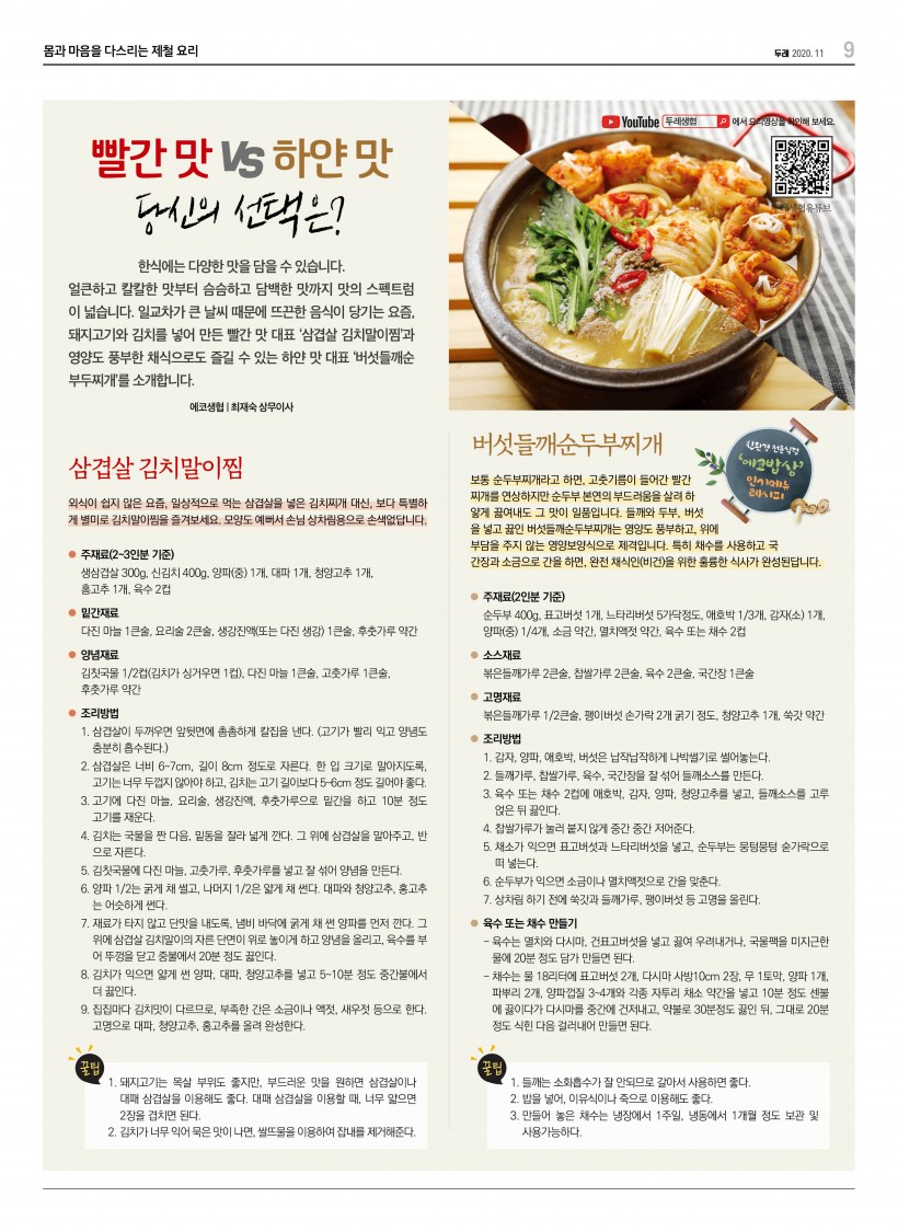 [제철요리] 빨간 맛 VS 하얀 맛 당신의 선택은? > 두레 COOK