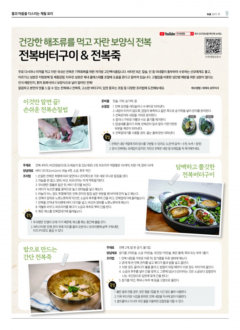 [제철요리] 건강한 해조류를 먹고 자란 보양식 전복(전복버터구이&전복죽) > 두레 COOK