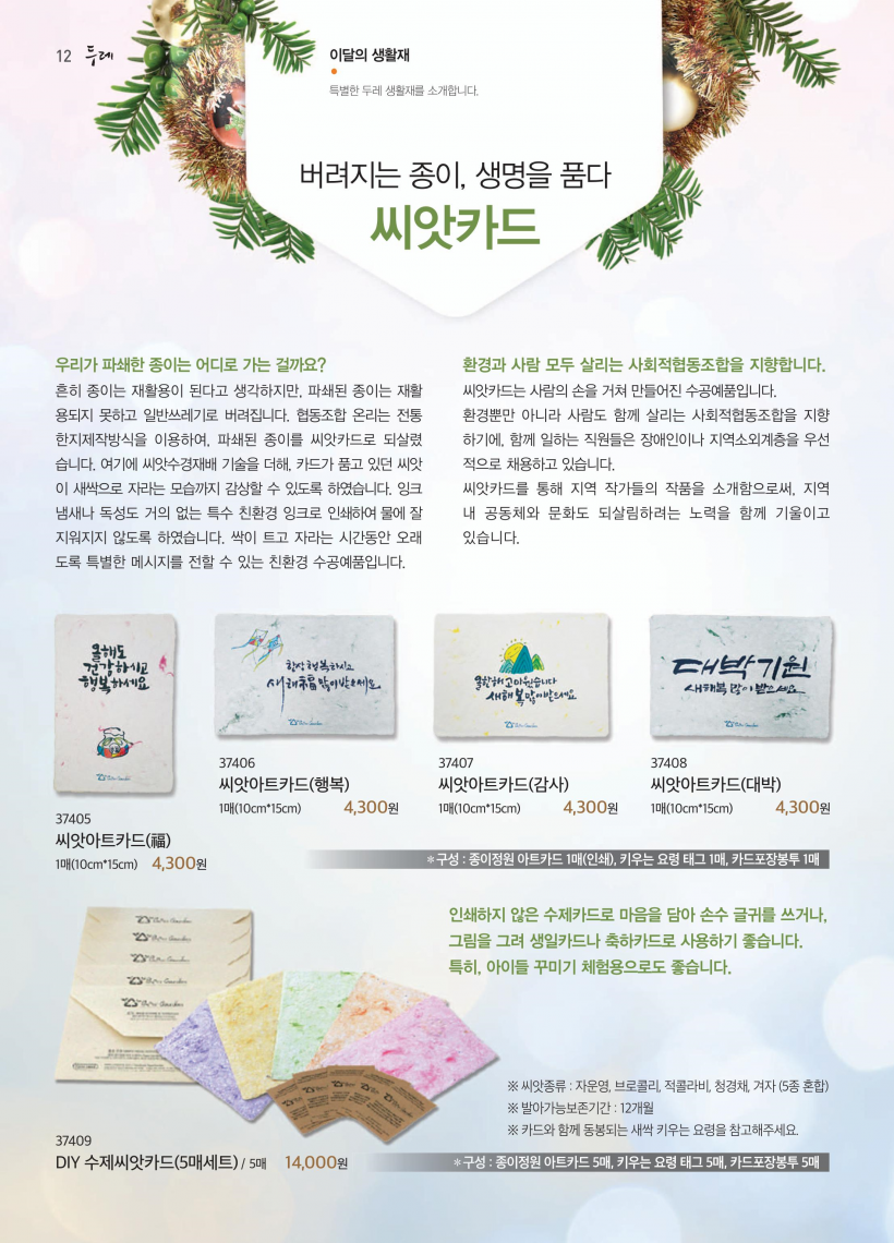 [이달의 생활재] 버려지는 종이, 생명을 품다 - 씨앗카드 > 두레 COOK
